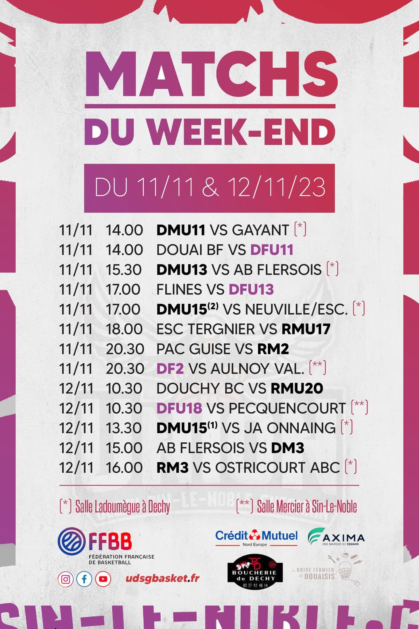 Matchs du week-end Publié par Stéphane Champion 9 novembre 2023 Étiquettes : Basketball, GameDay, Saison 2023-2024, Uniondechysinguesnainbasket