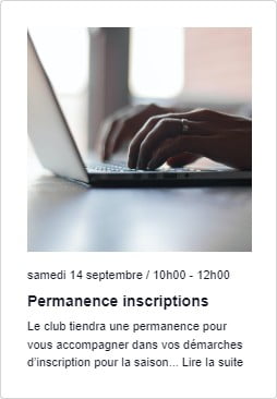 Le club tiendra des permanences pour vous accompagner dans vos démarches d’inscription pour la saison 2024-2025 à la salle Ladoumègue le vendredi 30 Août de 18h30 à 20h00, le samedi 07 Septembre de 10h00 à 12h00 et le samedi 14 Septembre de 10h00 à 12h00.